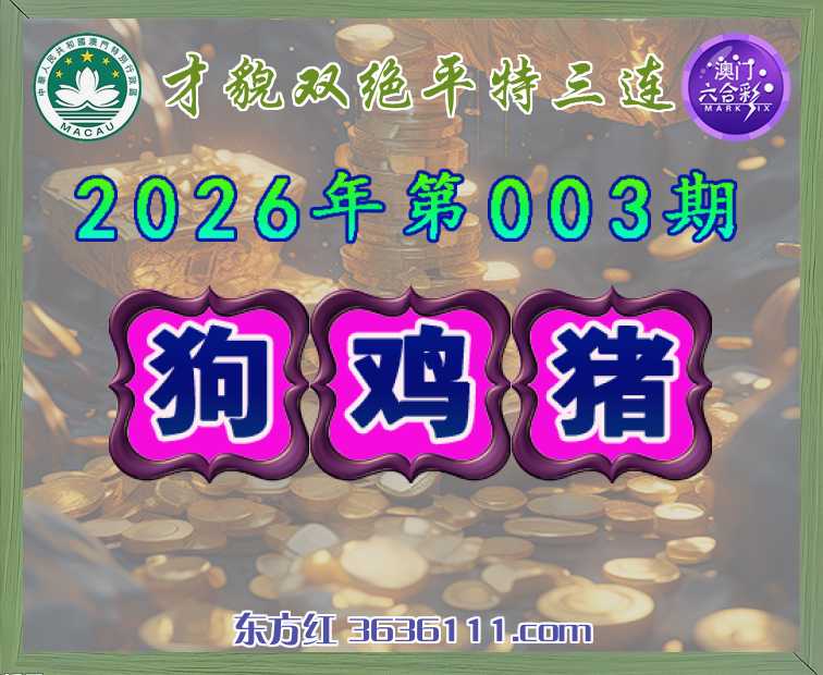 003期:『才貌双绝』 🧏♀️平特三连🧏♀️【狗鸡猪】开:狗44,鸡09,猪07准
