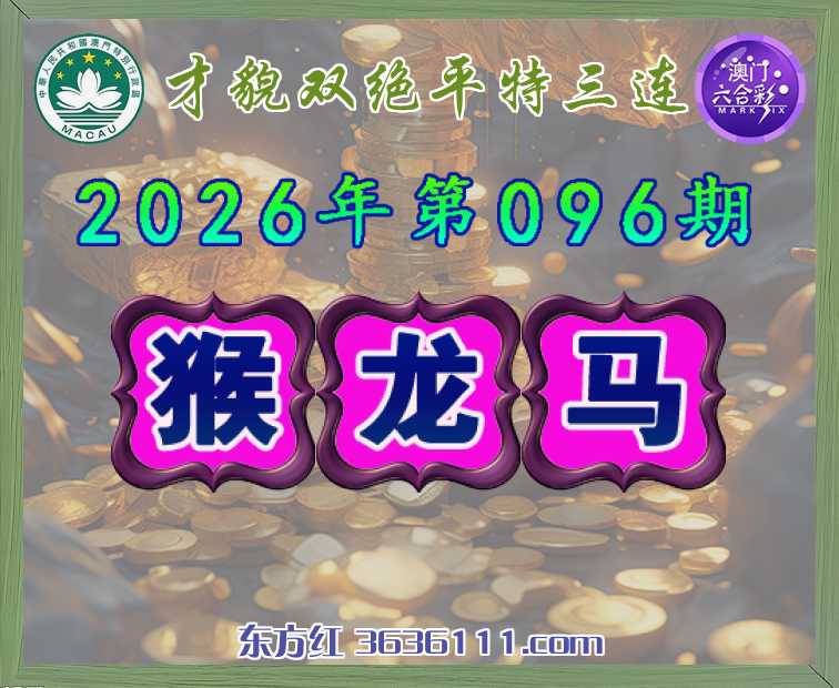 096期:『才貌双绝』 🧏♀️平特三连🧏♀️【猴龙马】开:猴35,龙15,马37准