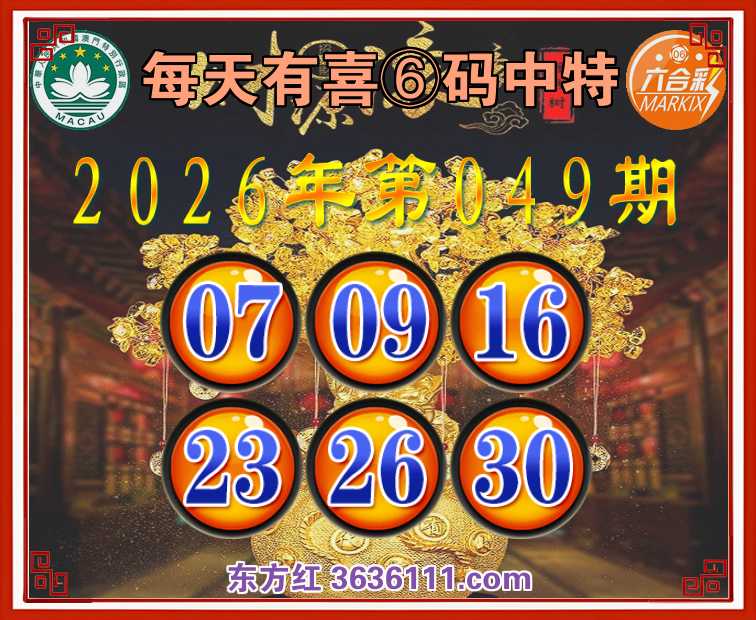 049期:〖每天有喜〗 🍕⑥码中特🍕【07.09.16.23.26.30】开:13错