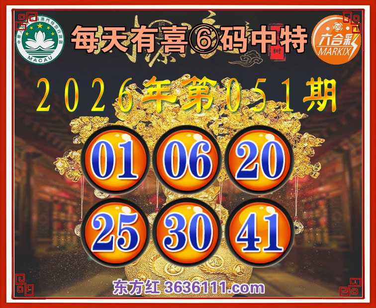 051期:〖每天有喜〗 🍕⑥码中特🍕【01.06.20.25.30.41】开:01准