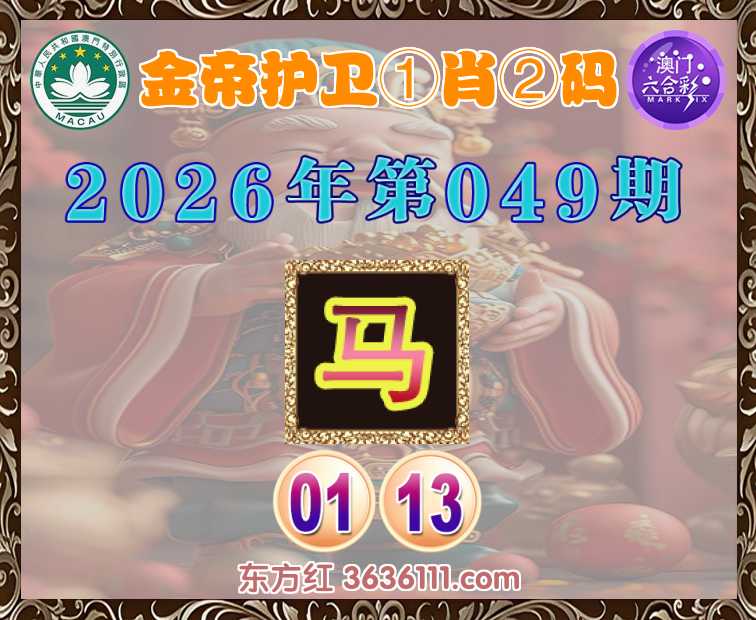 049期:《金帝护卫》 ♣️①肖②码 ♣️【马】【01.13】开:马13准
