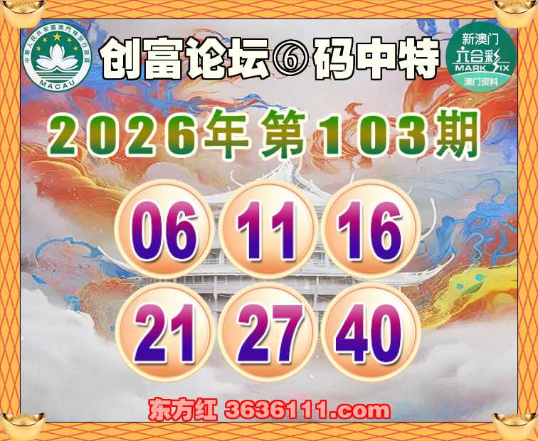 103期:『创富论坛』 🩴⑥码中特🩴【06.11.16.21.27.40】开:06准